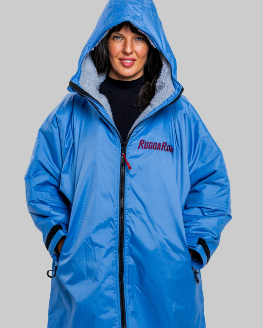 Pale Blue & Claret Logo Change Robe with Grey Fleece - RuggaRobe