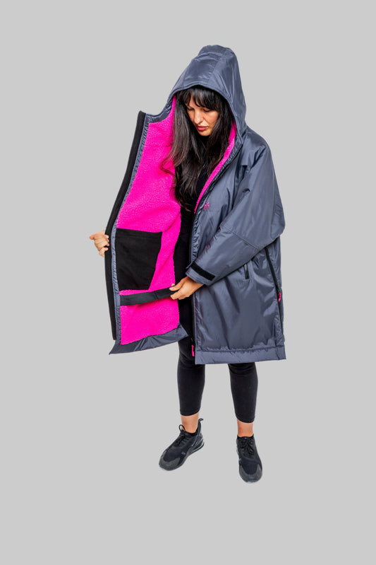 RR Country Grey Kids Change Robe with Pink Fleece - Country