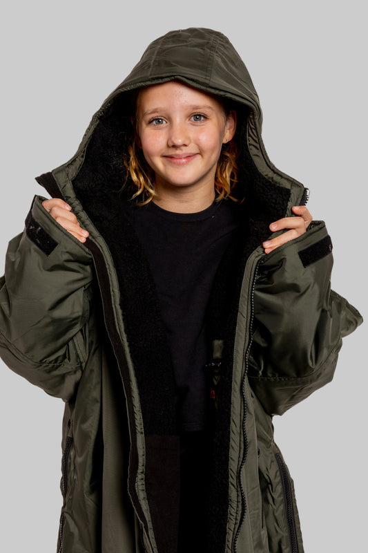 Green Kids Change Robe with Orange Fleece - RuggaRobe