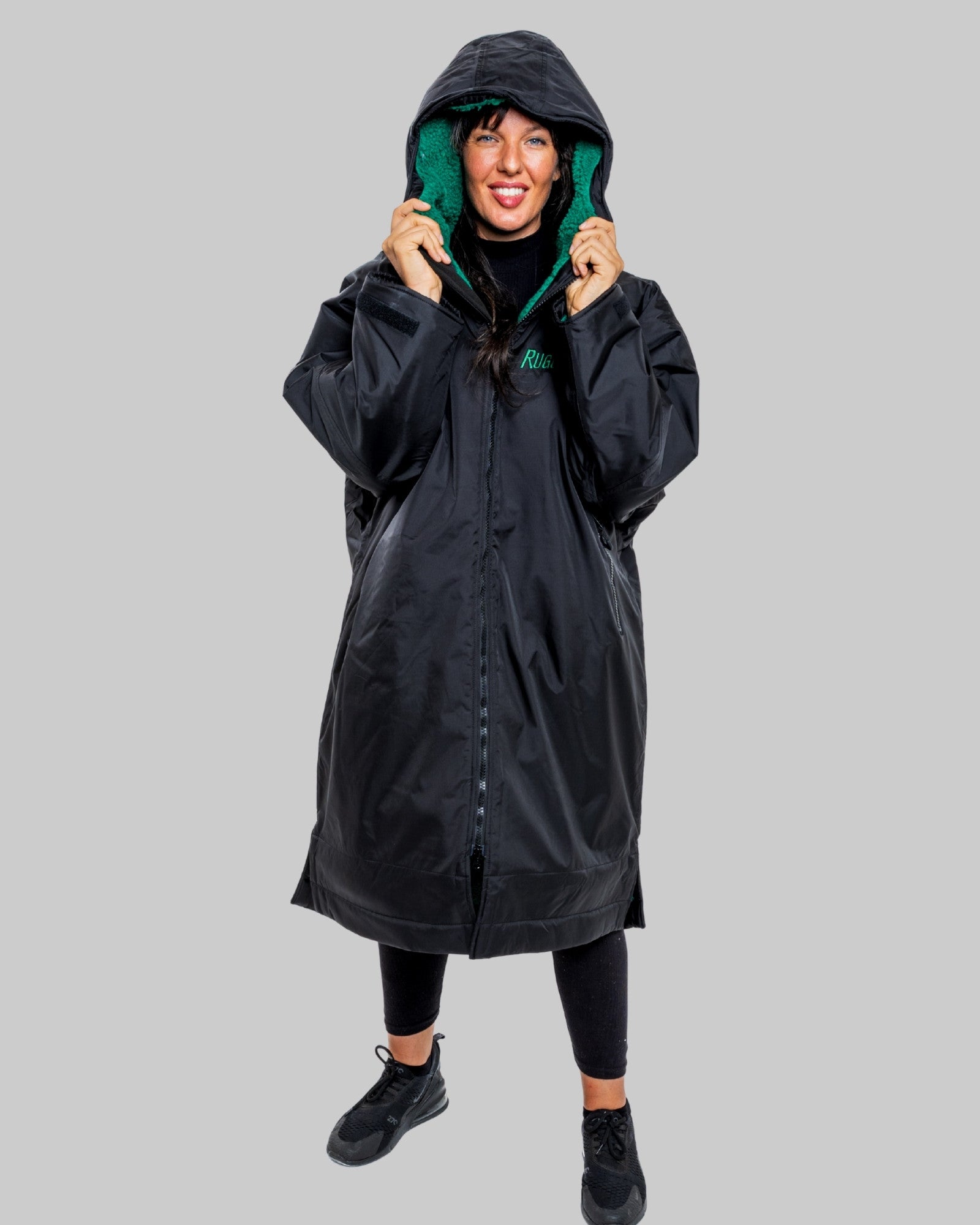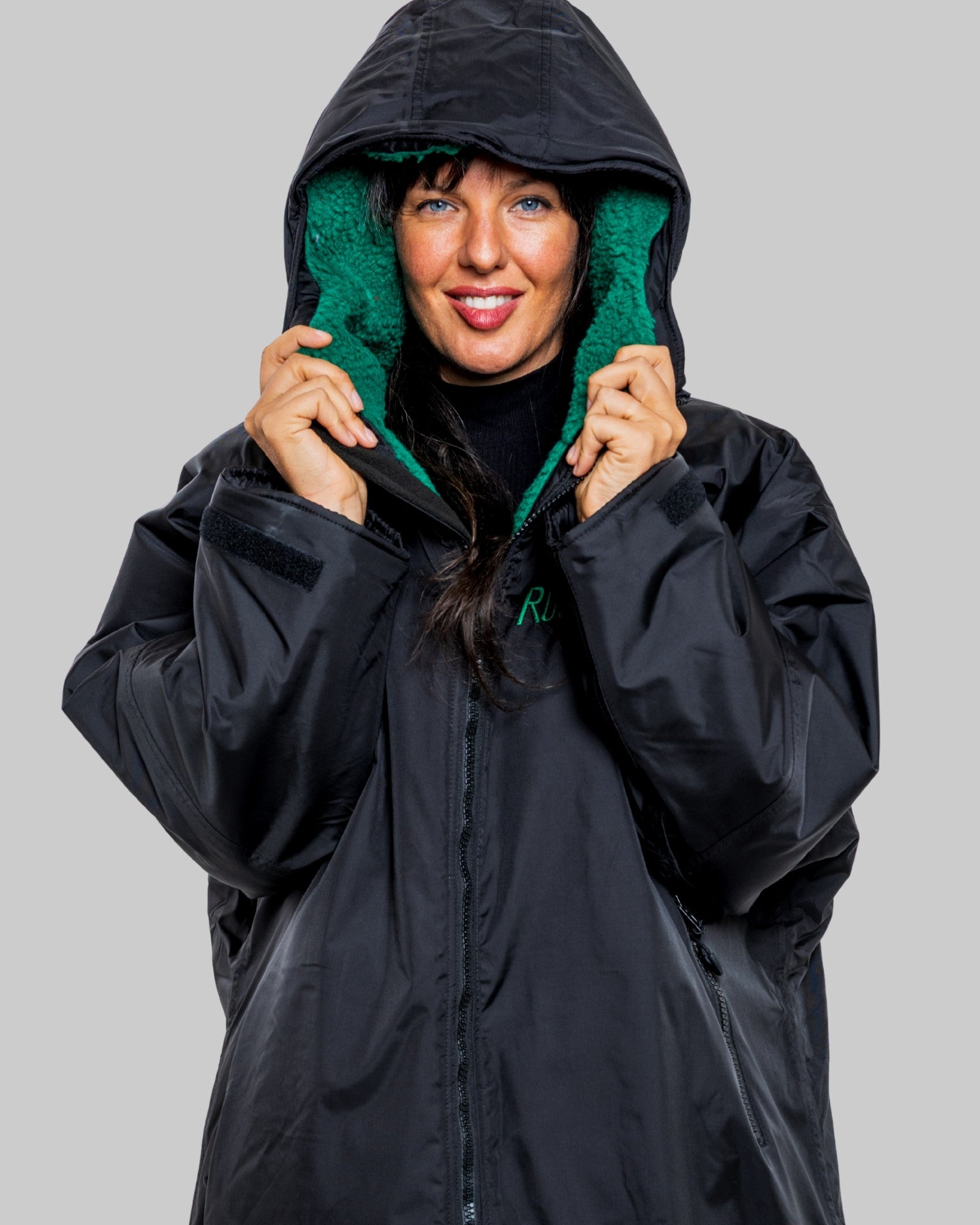 The oversized nature of the robes makes them ideal for changing underneath (traditional use of the robes) but also for use as a sub coat – where a range of body types and heights can fit into a robe and still keep the wearer warm and dry.  This oversizing, alongside the robustness of the robes, also means that kids can get years of use out of a robe.  All of our robes have long sleeves for extra warmth with Velcro straps to accommodate shorter arms (they look equally cool rolled up Miami vice style … we are showing our age now!).