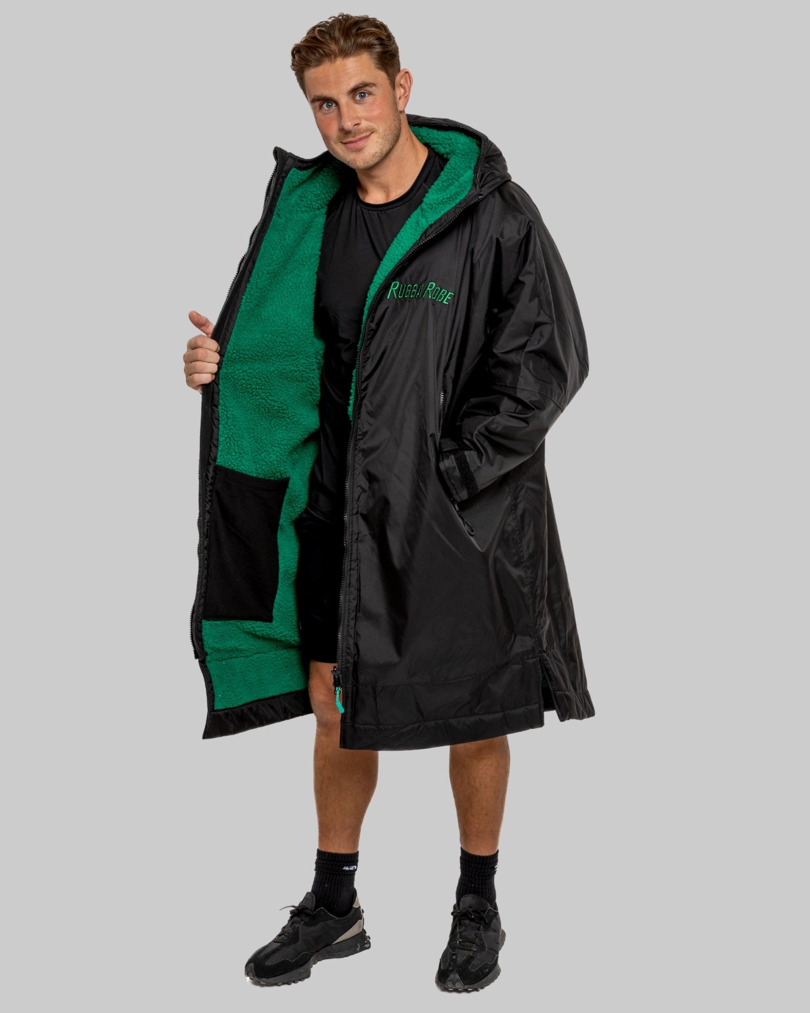 Black Change Robe with Green Fleece - RuggaRobe