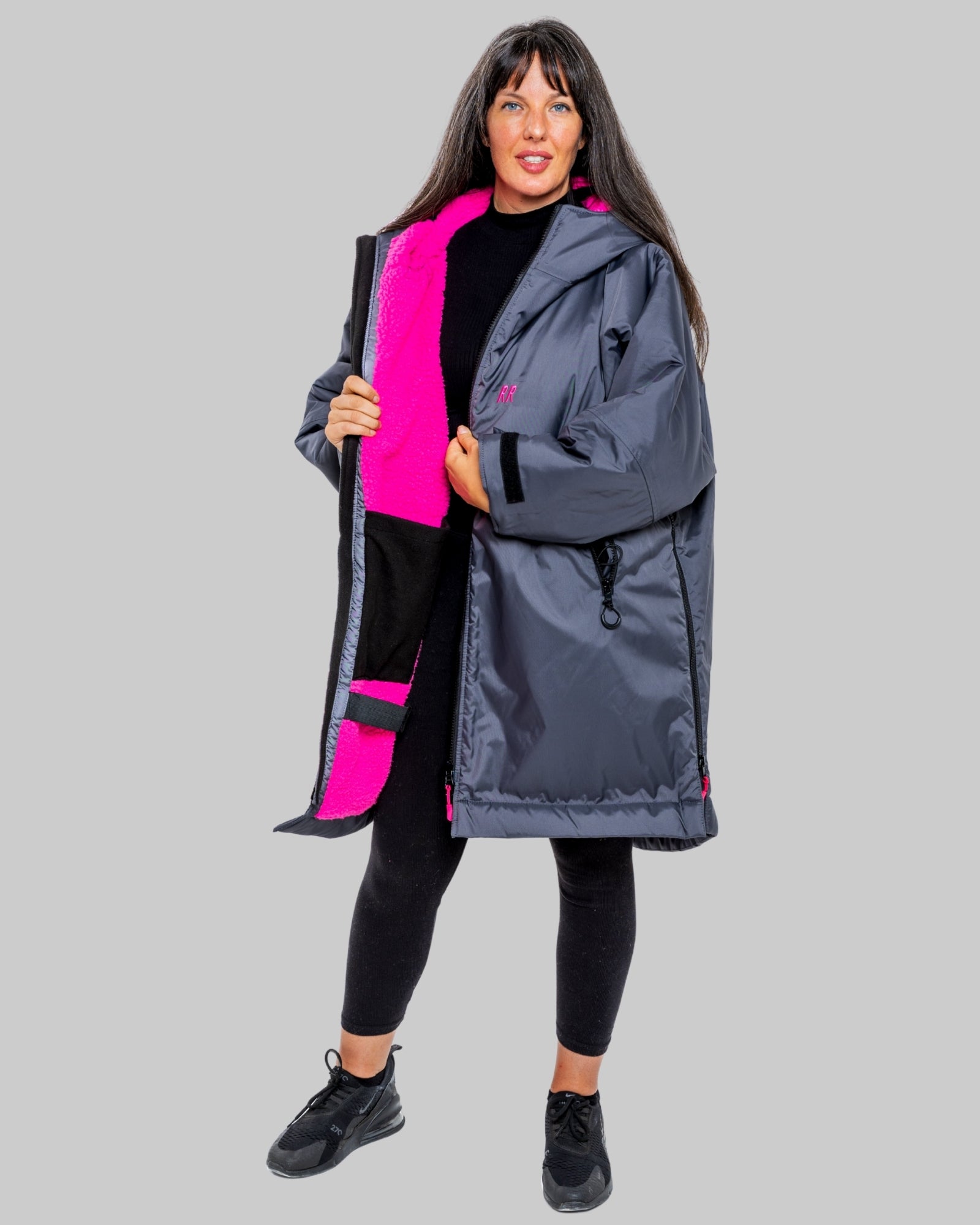 Dog Coat made Waterproof and with a cosy fleece - Grey with Pink fleece